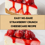 This Strawberry Crunch Cheesecake is a delightful no-bake dessert perfect for warm days or any occasion. With a crisp graham cracker crust, a light and airy cream cheese filling, and a fresh strawberry topping, it’s a fresh and satisfying treat for the whole family.