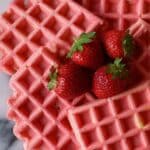 Keywords: strawberry waffles, breakfast waffles, fresh strawberry puree, easy waffle recipe, homemade waffles
