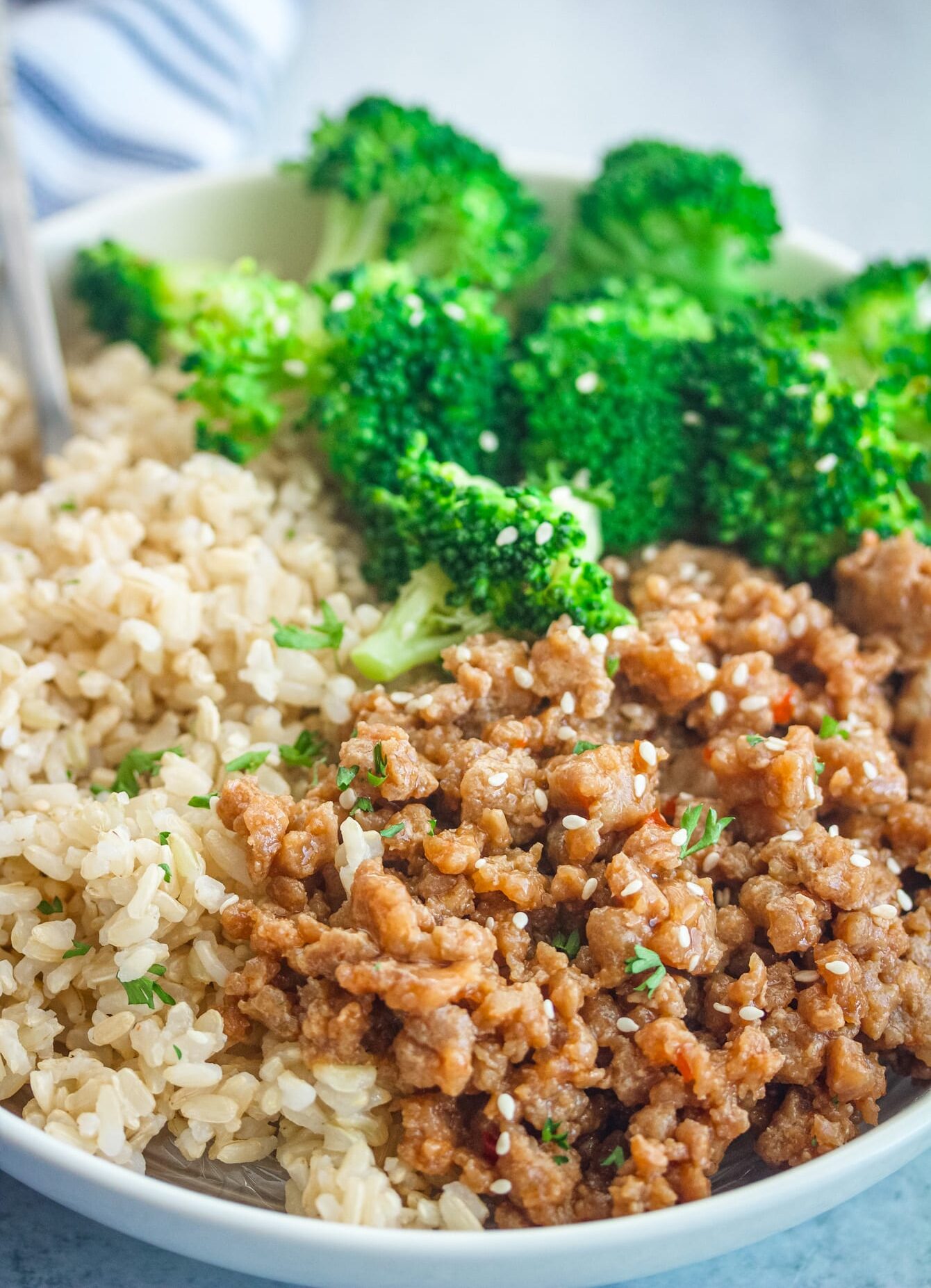 How to Serve Sweet and Spicy Ground Turkey & Broccoli Bowls