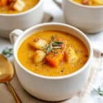 Keywords: roasted vegetable soup, winter soup, creamy vegetable chowder, butternut squash soup, vegetarian soup, healthy soup recipe