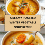 This Tasty Roasted Winter Vegetable Soup is a comforting, creamy chowder that combines the sweet and earthy flavors of roasted butternut squash, parsnips, sweet potatoes, carrots, and fennel. Enhanced with sautéed onions, fresh thyme, and a touch of milk, this soup is perfect for warming up on cold winter days. Roasting the vegetables intensifies their natural sweetness, while blending part of the soup creates a luscious texture without being overly heavy.