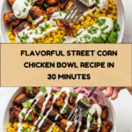 Keywords: street corn chicken bowl, Mexican chicken bowl, cotija cheese chicken, grilled corn chicken bowl, easy chicken bowl recipe, Mexican street food inspired