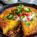 Texas Tamale Pie is a comforting and flavorful dish that combines savory beef, beans, and spices with a creamy cornmeal topping. It’s an easy one-pan meal perfect for family dinners or casual gatherings.
