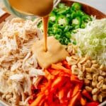 Keywords: Thai chicken salad, peanut dressing, coleslaw mix salad, easy chicken salad, peanut butter dressing