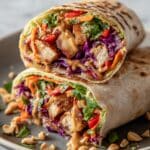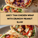 This Thai Chicken Wrap with Crunchy Asian Slaw combines tender marinated chicken thighs grilled to perfection with a vibrant, refreshing slaw and a rich, creamy peanut sauce. Wrapped in soft tortillas, this dish offers a perfect balance of savory, tangy, and slightly sweet flavors for a satisfying and flavorful meal.