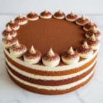 Keywords: Tiramisu cake, Italian dessert, mascarpone cake, coffee soaked cake, Genoise sponge, espresso dessert, layered cake