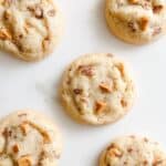 Keywords: toffee cookies, easy cookies, buttery cookies, sea salt cookies, homemade cookies, caramel crunch cookies