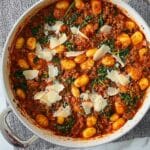 Store leftovers in an airtight container in the refrigerator for up to 3 days. Reheat gently in a skillet over medium-low heat, adding a splash of broth or water to loosen the sauce if it has thickened. This dish does not freeze well due to the gnocchi texture.