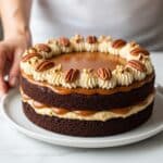 This indulgent Turtle Caramel Cake combines the rich flavors of German chocolate cake with gooey caramel, crunchy pecans, and smooth chocolate fudge frosting, creating a decadent dessert perfect for any special occasion or chocolate lover’s treat.