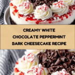 Keywords: White chocolate cheesecake, peppermint bark, holiday dessert, Oreo crust, peppermint mousse, festive cheesecake