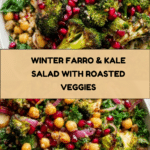 Keywords: Winter salad, farro salad, kale salad, roasted broccoli, healthy salad, vegetarian salad, Mediterranean salad
